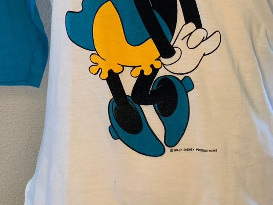1980's Minnie Mouse Baseball Style T-shirt, Turquoise Sleeve, Raglan, Authentic Disney Vintage