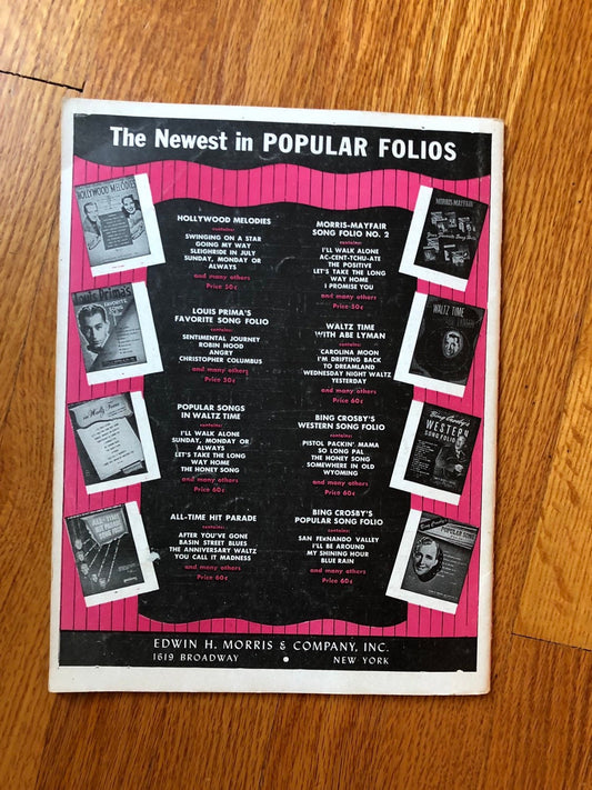 Bing Crosby's Serenade Song Folio Vintage Sheet Music 1940’s sheet music, Vintage Rare Sheet Music