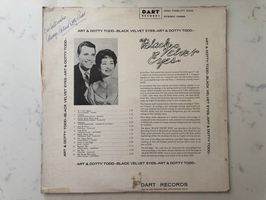 Art And Dotty Todd | Black Velvet Eyes | 1950's Chanson Pop Records | Dart Records DS888 | AUTOGRAPHED Signed | Henri Beau Orchestra